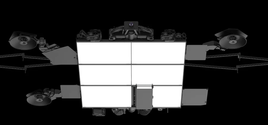 I satelliti Starlink anch’essi pensati per fare la loro bella figura visivamente, consistono di una piattaforma dal design compatto e pannelli solari dispiegabili, la loro struttura è minuziosamente pensata per essere immagazzinata occupando il minor spazio possibile nell’ogiva del Falcon 9, così da massimizzare il numero di satelliti trasportabili per ogni lancio.